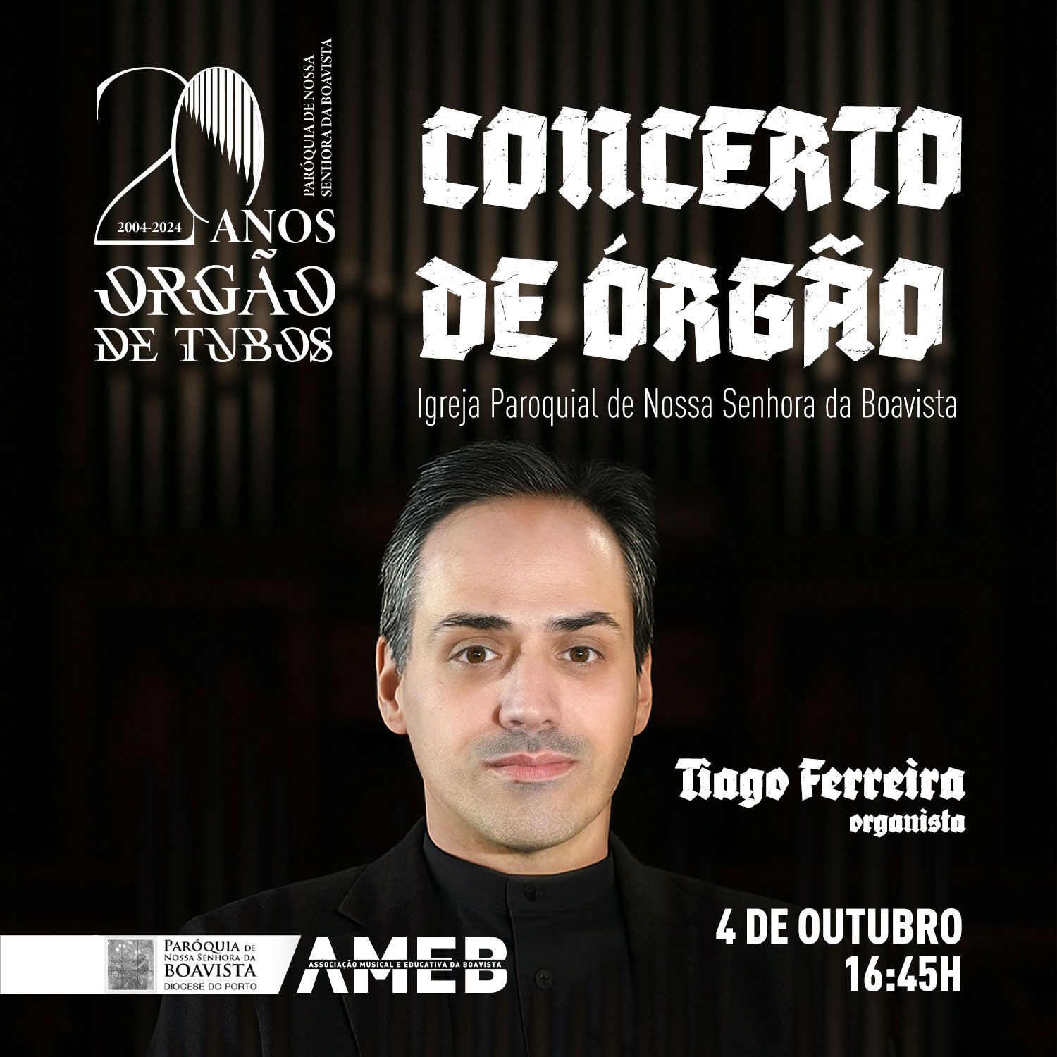 É com grande honra que, no próximo dia 4 de outubro, acolheremos o organista Tiago Ferreira para um concerto que dará voz à riqueza e à grandiosidade do nosso órgão de tubos.
